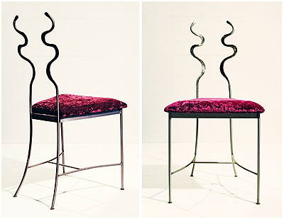 Low Chagall Chair Handforged low back chair (can also be made with a higher back). Faux suede, leather or textile seat paddings available. You can also supply your own material. £230.00 includes Leather seat cover plus the cost of the material . To order direct from Redhouse Click here to convert our prices to a guide price in other currencies |