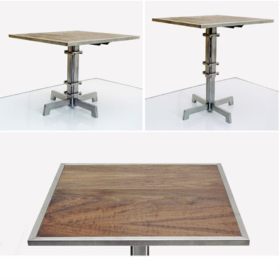 Rise & Fall Table This table was originally made to accomodate the needs of a venue were a dining type table and a low coffee table type was needed at different occassions. So by pessing a lever this table will rise and fall. The frame is made of stainless steel with a walnut wood insert. £ 975